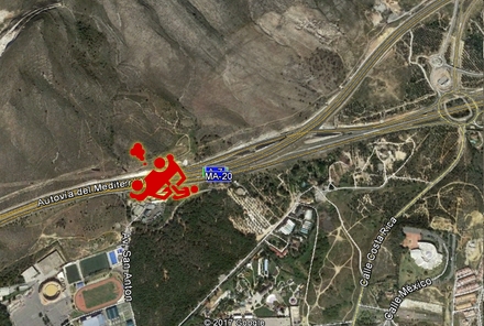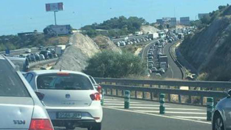 Det er lige ved sammenfletningen af motorvejen, der fører uden om Málaga og den, der kommer inde fra Málaga og lufthavnen. Der er lige pludselig to veje med i alt seks baner, der skal blive til én vej.