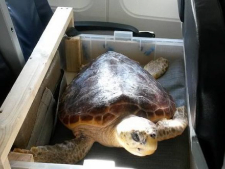 Havskildpadden Leona strandede i Irland under en storm og var lige ved at omkomme. Nu er hun kommet til hægterne og har taget flyet til Gran Canaria.