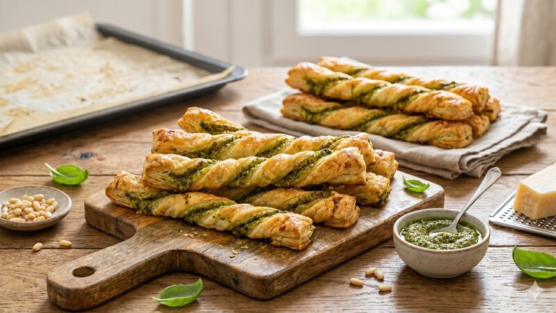 Palitos de hojaldre con pesto
