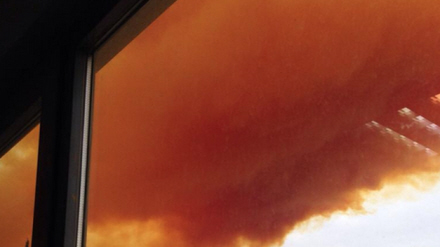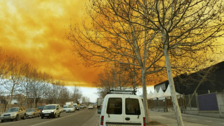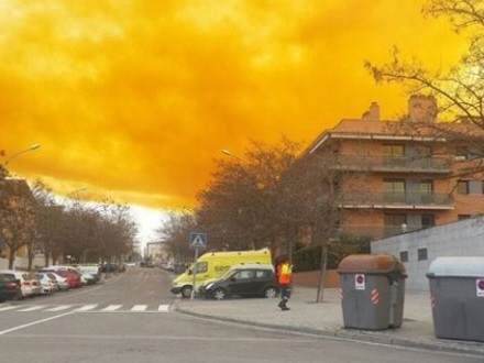 De fleste borgere fik dog lov til gå ud igen efter omkring en times uvished, hvor de skræmte borgere bare kunne se den orange sky brede sig og langsomt skygge for solen.
