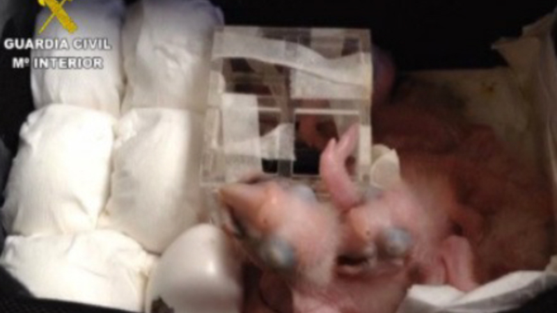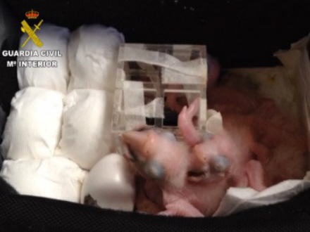 I kufferten fandt Guardia Civil nemlig syv nyfødte papegøjeunger og 11 papegøjeæg.