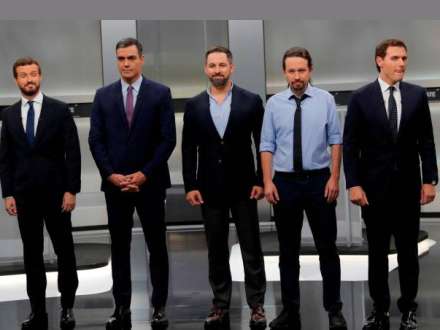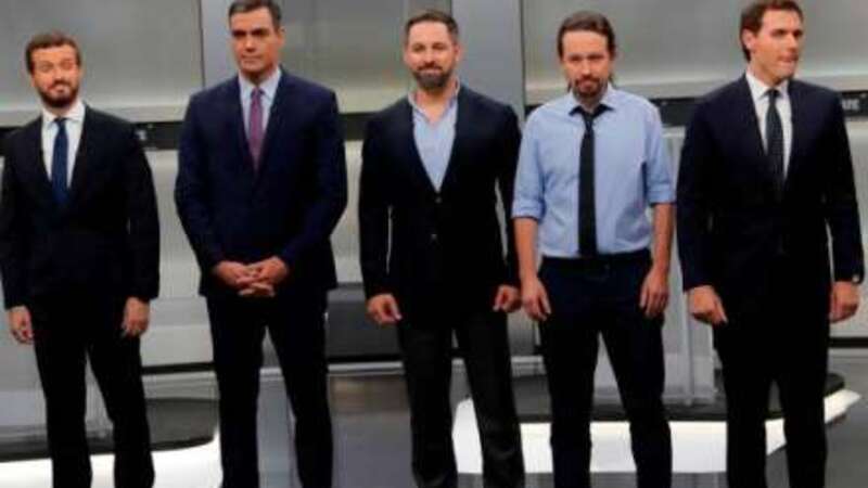 De fem partiledere var Pablo Casado, PP, fungerende premierminister Pedro Sánchez, PSOE, Santiago Abascal, Vox, Pablo Iglesias, Unidos Podemos og Albert Rivera, Ciudadanos