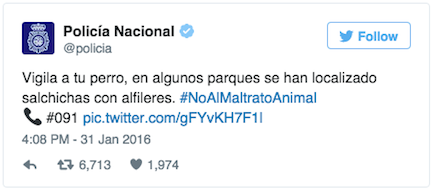 Nyheden kommer kort tid efter flere lignende tilfælde i Marbella. Her er der dog tale om forgiftede pølser, hvor det er kemikalier snarere end metalstumper, der dræber de intetanende hunde.