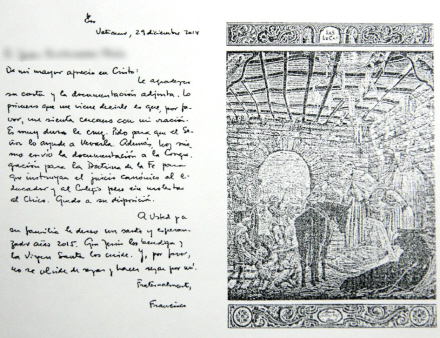 El Mundo bragte i denne måned et brev fra paven, dateret i december 2014, som var blevet sendt til det påståede offers forældre, hvor Paven lovede, at Vatikanet var at undersøge sagen.