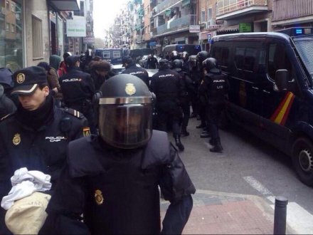 Og inden politiet kom ind i lejligheden, smadrede de en glasdør, som demonstranterne forsøgte at holde lukket. Glaskårene regnede ned over demonstranterne, der derefter blev slæbt væk. Ifølge Typically Spanish blev fire af aktivisterne anholdt.