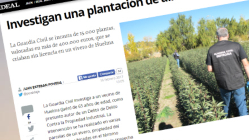 Efter at have taget prøver af de forskellige mandelsorter kunne betjentene konstatere at 16 af gårdens sorter er beskyttet af en monopolaftale mellem staten og en privat virksomhed.