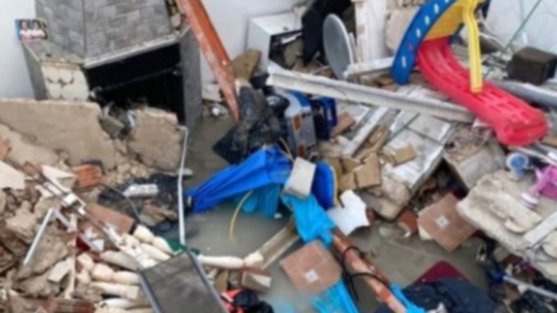 Det oplyses, at bassinet indeholdt cirka 8.000 liter, hvilket har lagt et massivt pres på på flere ton fordelt på få kvadratmeter og forårsaget kollapset.