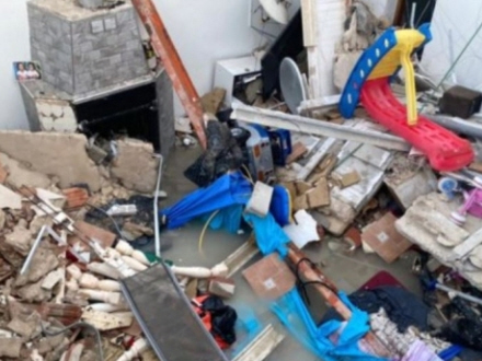 Det glemte familien her bestående af tre voksne og fire børn, der boede sammen i huset, hvor taget kollapsede i går morges.