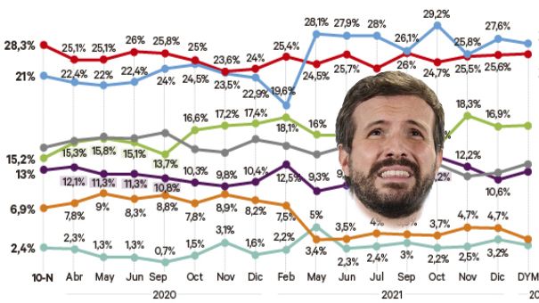 SAMFUND & POLITIK: Den seneste meningsmåling fra DYM/20minutos giver et noget grumset billede - selvom Pablo Casado sandsynligvis ville erobre Premierministerposten.