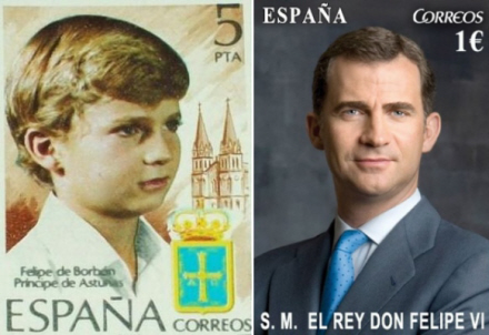 Kongens første frimærke havde en værdi af 5 pesetas, hvilket svarer til 0,03 euro