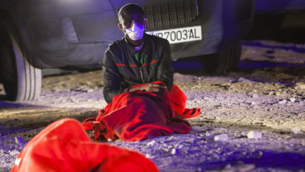 Immigrant på stranden ved San Bartolomé de Tirajana på Gran Canaria