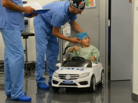 En efterfølgende undersøgelse afslørede, at 98 procent af de børn, som “selv kørte” var helt rolige, når de kom ind i på operationsstuen.