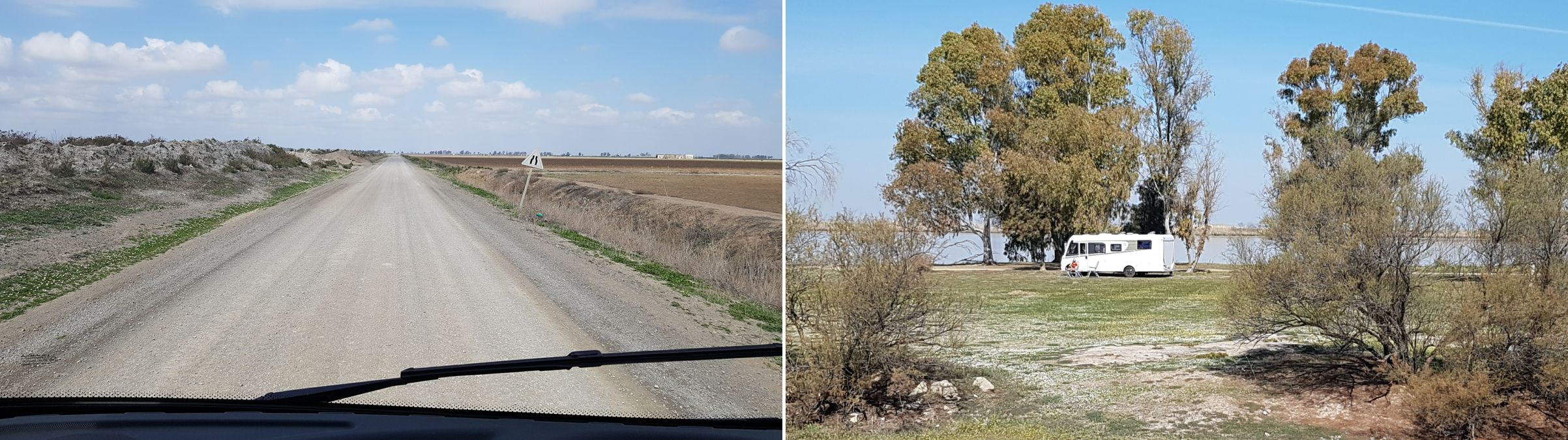 Nu skal vi altså til Sevilla. Vi starter ud og har fundet en rute, som fører os ud på de mindre veje. Vi tager vejen mod Mesas de Astra, fortsætter videre til Trebujena, og til Lebrija, hvor Kate finder en ”genvej” til A-8150 som fører os ud til La Señuela ved floden Guadalquivir.