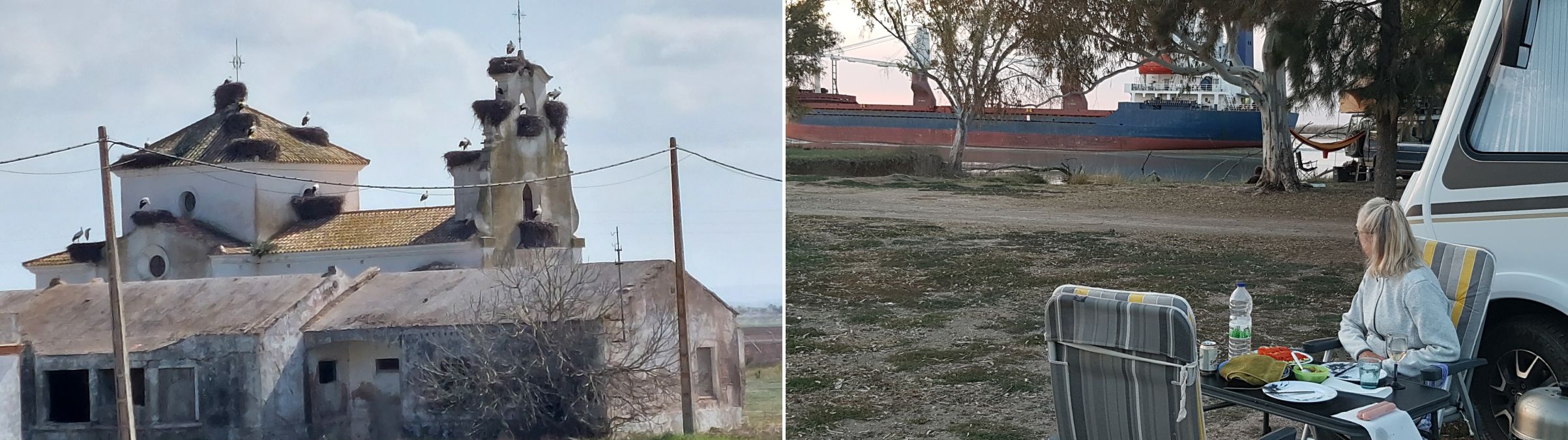 Går ture langs floden og ind i land hvor der dyrkes mange slags afgrøder. Og som sædvanligt er der kunstvanding alle steder. Vi følger tidevandets bevægelser, som er tydelige på navigationsbøjerne i floden, nyder solnedgangen over floden, og følger med i skibstrafikken. En sjov ting, at Sevilla som ligger langt inde i land, faktisk har en rimelig havn. Det er ikke de mindste skibe der passerer.
