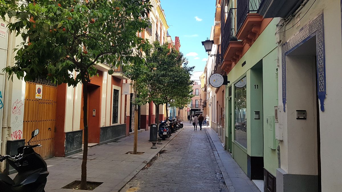 Vi krydser floden og forvilder os ind i gamle stræder og smøger på vejen til Setas de Sevilla, som vi gerne vil se.