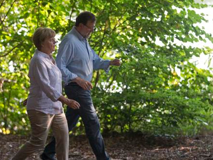 Mariano Rajoy har slentret en god lang tur med sin gamle veninde Angela Merkel for at samle støtte til sin kommende genvalgskampagne i slutningen af året.