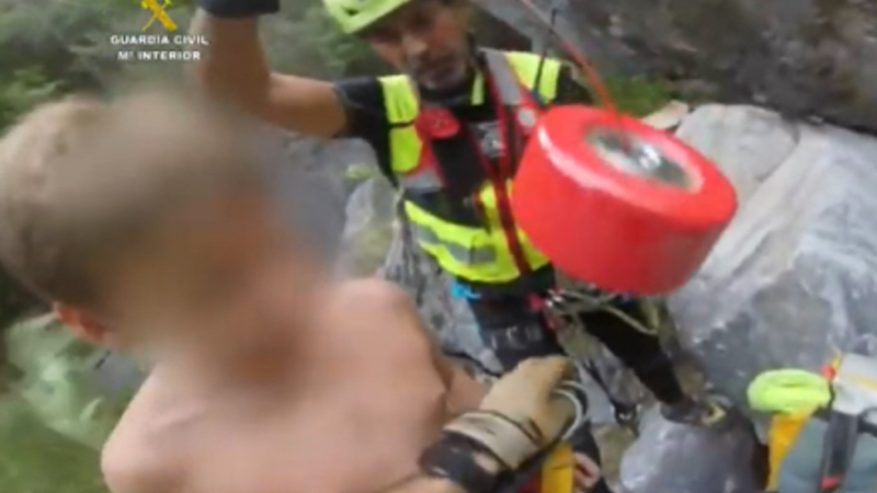 Helikopteren fra Guardia Civil fløj over floden og fandt gruppen omkring klokken 20:00. Helikopteren svævede over dem, og bjergspecialisterne firede sig ned til børnene. De var alle ved godt helbred.