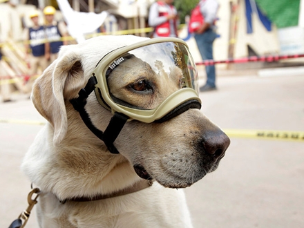 KATASTROFE: Redningshunde, som blandt andet dem ved jordskælvet i Mexico, er kun ude på sjov.