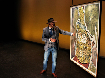 Det er den lokale kunstner José Luis Puche Nieto, der har skabt en ret personlig collage baseret på hans egne minder og oplevelser med broderskaberne. Fotografierne er overrevet og sat sammen på en måde, så det danner silhuetten af en af brødrene fra påskeoptogene, hvis kjortel er Jomfru Dolores Coronada de la Expiracións tæppe.