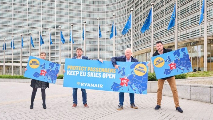 Ryanair har iværksat en underskriftsindsamling blandt sine passagerer for at lægge pres på EU for at beskytte flytrafikken, når Frankrigs flyveledere strejker igen og igen.