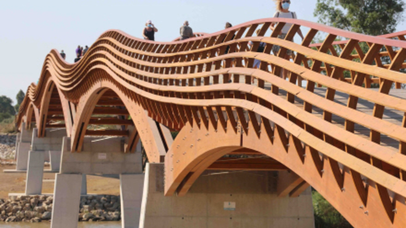 OPLEVELSE: Efter måneders forsinkelser kunne folk endelig gå turen over Guadalhorce-floden i Málaga i går. Der er tale om kontinentets længste træbro og med skandinaviske rødder.