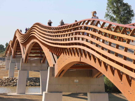 Endelig skete det så. Søndag den 27. september klokken 11:30 blev Europas længste træbro indviet.