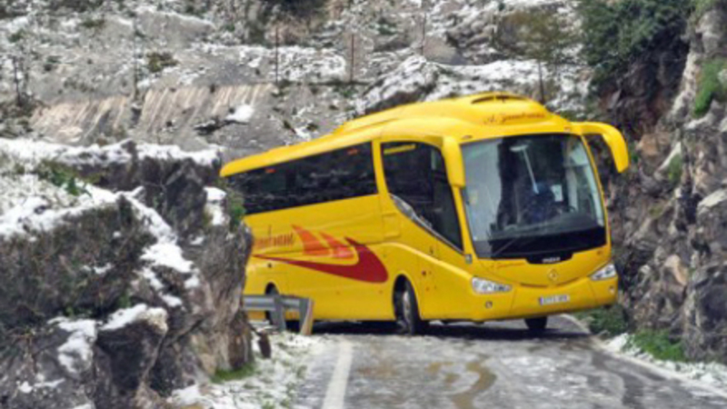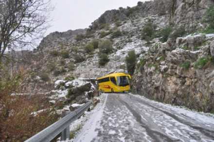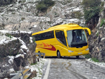 TRAFIK: Bus var centimeter fra decideret katastrofe på isglatte veje i Serrania de Ronda.