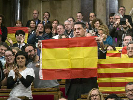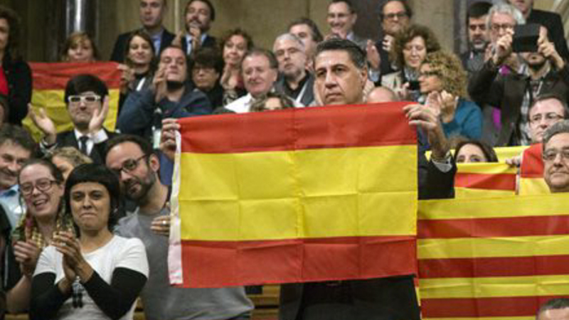 Vedtagelsen skete under tordnende bifald, som overdøvede oppositionens medlemmer, der havde spanske flag i hånden.