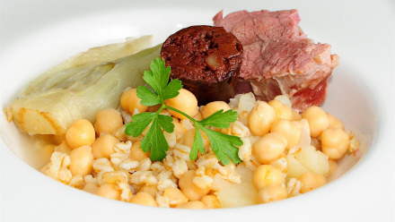 Dette er en typisk fad i Maragatería, der er et område af León-provinsen, der engang var hjem for Maragato-folk. En særskilt social gruppe med deres helt egne traditioner, som også kom til udtryk i deres gastronomi.