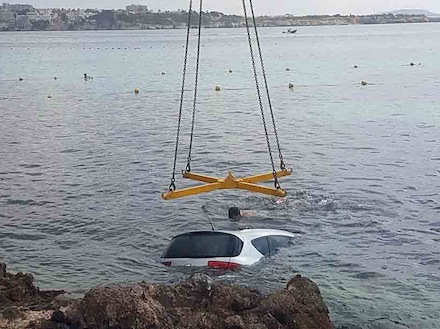 Uden at noget på vejen var kommet til skade, kunne det samme ikke siges om bilen, der styrtede direkte i havet.