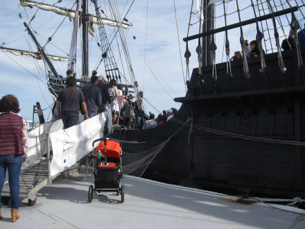 Der var nysgerrige landkrabber i alle aldre, da kopien af galionen Nao Victoria lå ved kaj i Fuengirola i weekenden. Køerne var lange fra tidligt på formiddagen. En enkelt lille gut var iført sørøvertøj fra top til tå, og bedstemødre, der ikke kunne klare at få gangstativet med om over rælingen, ventede tålmodigt i det fine solskinsvejr på kajen.