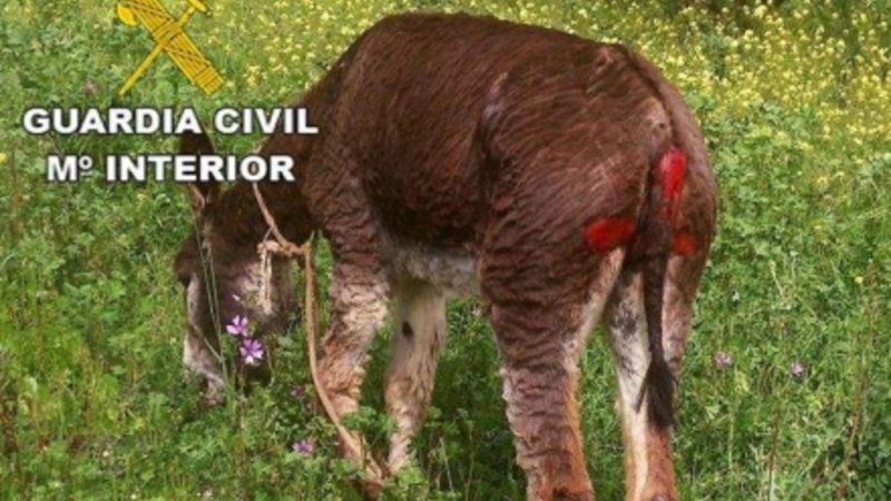 Æselet blev efterfølgende fundet lemlæstet og bundet fast til en lygtepæl. Sagen er kommet frem takket været en anmeldelse til Policia Local om dyrplageri.