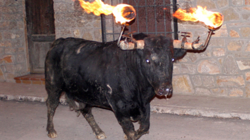 Byen Benitatxell i Alicante Provinsen forbyder nu at sætte brændende stykker træ fast til tyres horn og spærre dem inde, hvilket ellers er en tradition ved tyreløbet under byens årlige festival.