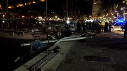 To yachter blev beskadiget i kollisionen og en ti meter lang Furia 34-model med navnet 'La Huida' sank. Brandmænd forsøgte at bjerge fartøjet igen.