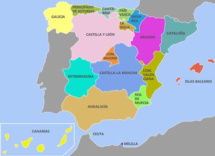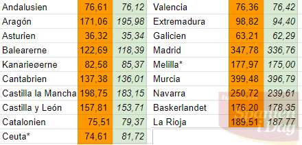 Både Andalusien, Valencia og Galicien viser stagnation. Kanarieøerne falder sammen med Aragón, Ceuta og Baskerlandet.