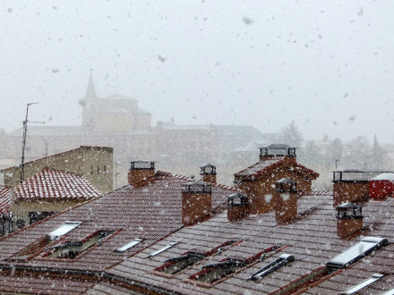 Problemerne med sneen startede allerede i går mange steder, og det har lukket veje i blandt andet Ávila, Segovia (foto), Soría og Zamora.