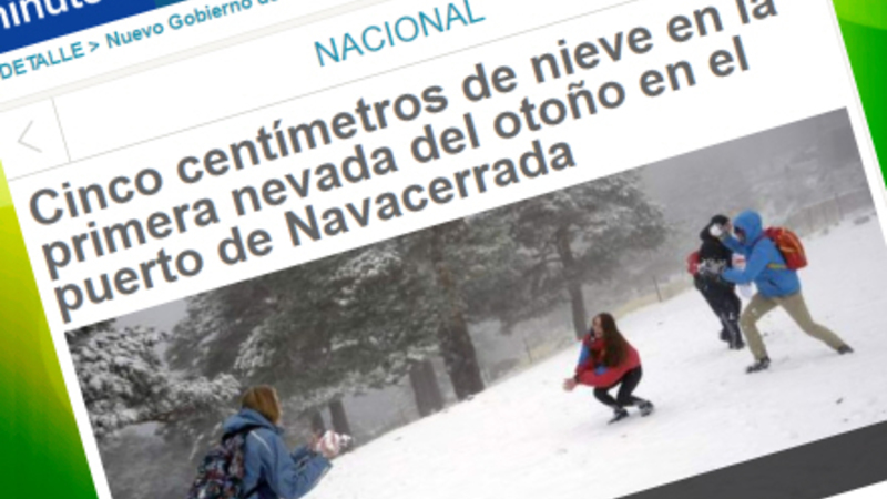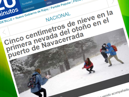 I Madrid-bjergpasset El Puerto de Navacerrada lå der i går omkring fem centimeter sne efter den første nedbør i mange måneder. Her faldt nedbøren som sne i højder over 1.600 meter.
