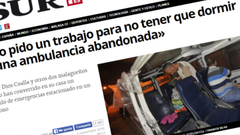Sådan siger en af Málagas mange desperate hjemløse, Juan de Dios Coalla, da en fotograf vil tage billeder til en historie om hjemløses håbløse situation i byen.