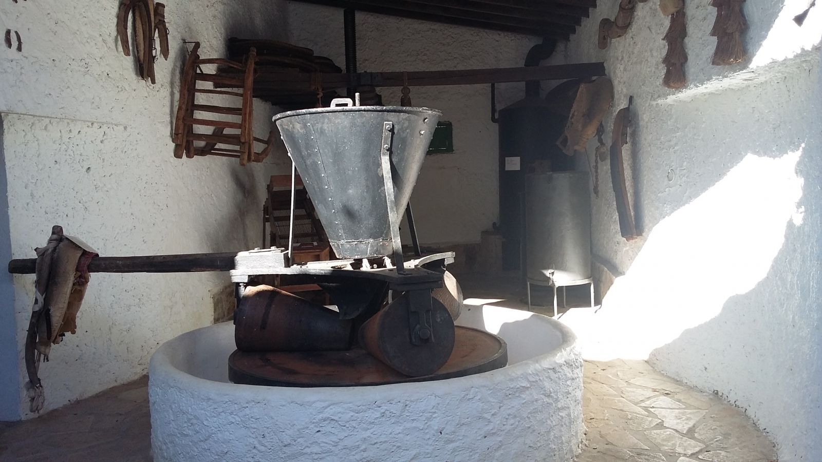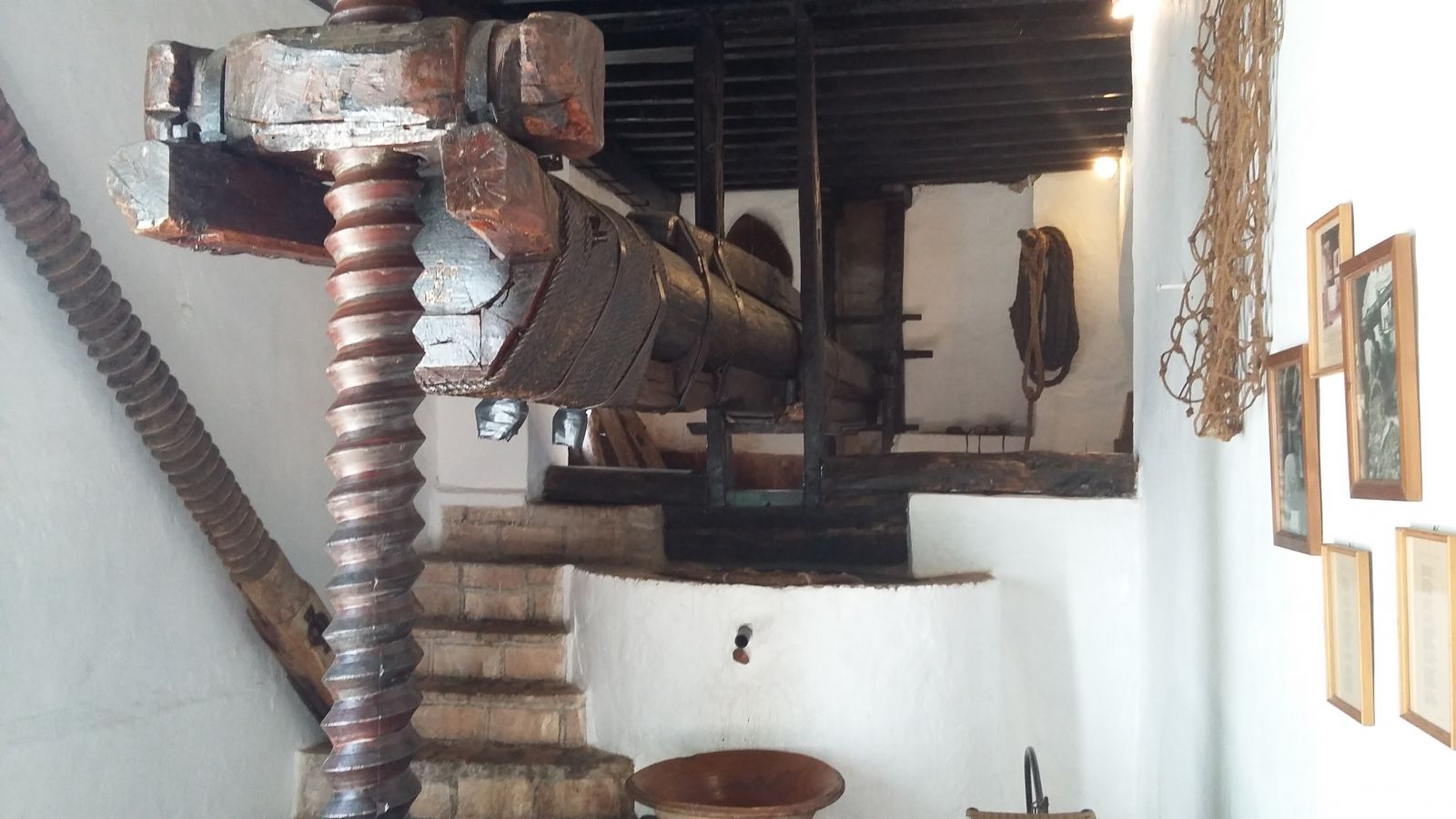 Lige ved indgangen til museet står den gamle vin-presse, som ved hjælp af en tonstung sten forvandlede druer til saft, som blev opbevaret i krukker i 40 dage, hvorefter vinen blev hældt på fade og solgt.