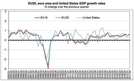 Den europæiske Kommissions statistiske kontor Eurostat publicerede onsdag deres såkaldte flash estimat for stigningerne i de enkelte medlemslandes bruttonationalprodukter i årets andet kvartal.