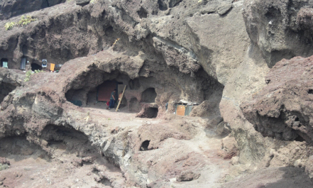 Man kan stadig finde rester efter gamle huleboere på bjergskrænten