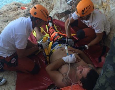 SVS-medarbejdere fik fikseret den unge på en båre, inden han blev hejst op i helikopteren, der fløj ham til den lokale brandstation. Her ventede en ambulance, der bragte ham til hospitalet i Dénia. Slaget mod benet gjorde, at han ikke kunne bevæge sig.