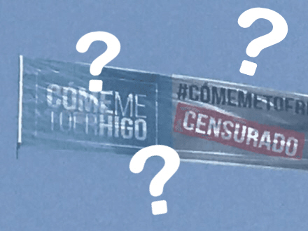 Indholdet var til gengæld noget uvant. I stedet for navnet på en restaurant eller butik, stod der bare “Cómeme to er higo” på banneret. Ved siden af var der printet et billede et billede af en nøgen kvinde med ryggen til kameraet.