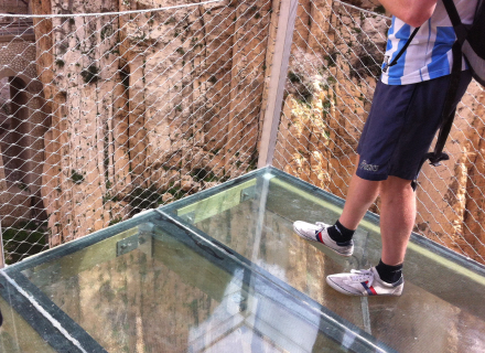 Hjertet sidder stadig i halsen, når du kort derefter kommer til platformen af glas, og så bliver det for alvor udfordrende for højdeskræks-folket. Andre er så overskudsagtige, at de blærer sig med at lave armbøjninger på glasset.