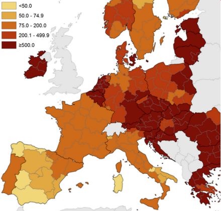 Lad os dernæst se på incidensen i de forskellige regioner