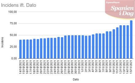 Den generelle incidens for hele Spanien pr. 100.000 indbyggere