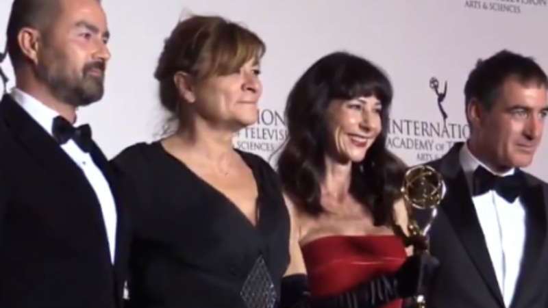 VIDEO: Både danske og spanske tv-folk kunne i nat gå glade i seng efter at have scoret branchens største cadeau. Og der blev endda plads til lidt dansk humor i takketalen.