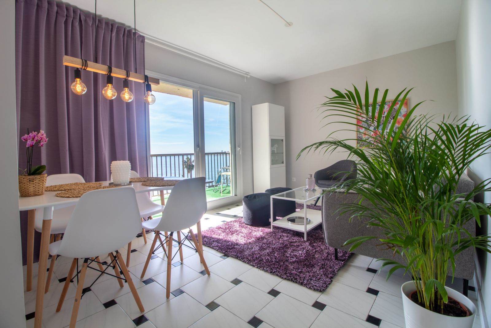 Fra stuen og spiseafdelingen er der direkte adgang til den solrige sydvendte terrasse med udsigt over havet og kysten i Fuengirola