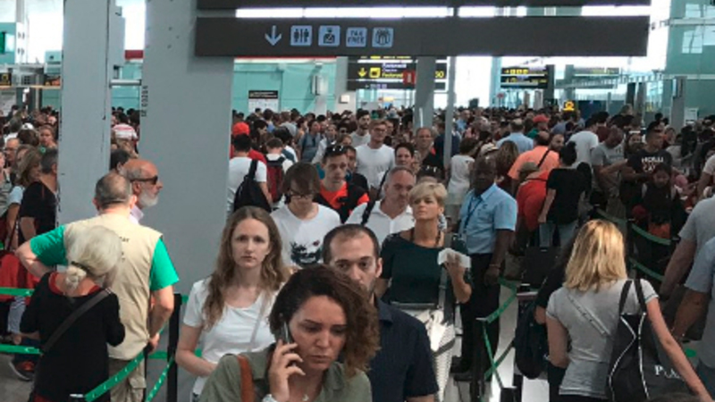 Og i dag har det allerede resulteret i uoverskuelige køer i El Prat. Op til 40 minutter, stod folk i kø efter den første punktstrejke tidligt i morges. Efter nummer to er vi over en times ventetid.