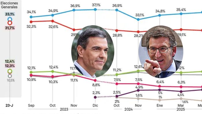 Undersøgelsen, hvis feltarbejde fandt sted mellem 14. og 19. maj, et par uger efter strømsvigtet på halvøen, viser, at det tilbageslag, som PP led i november sidste år, da partiet faldt til samme niveau som ved det sidste parlamentsvalg, var en engangsforeteelse og ikke har haft nogen langvarige konsekvenser. Selvom PP, der ledes af Alberto Núñez Feijóo, endnu ikke har genvundet hele den procentdel af stemmerne, det opnåede på sit højeste i denne valgperiode, nemlig 37,1 procent ved udgangen af 2023, ligger det stadig komfortabelt på førstepladsen, blandt andet fordi det er det parti med den største vælgerloyalitet: 88 procent af dem, der stemte på partiet i 2023, vil gøre det igen.